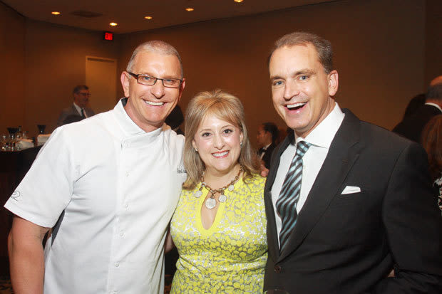 Food Network celebrity chef Robert Irvine from the series Restaurant Impossible working the kitchen and mixing with guests
