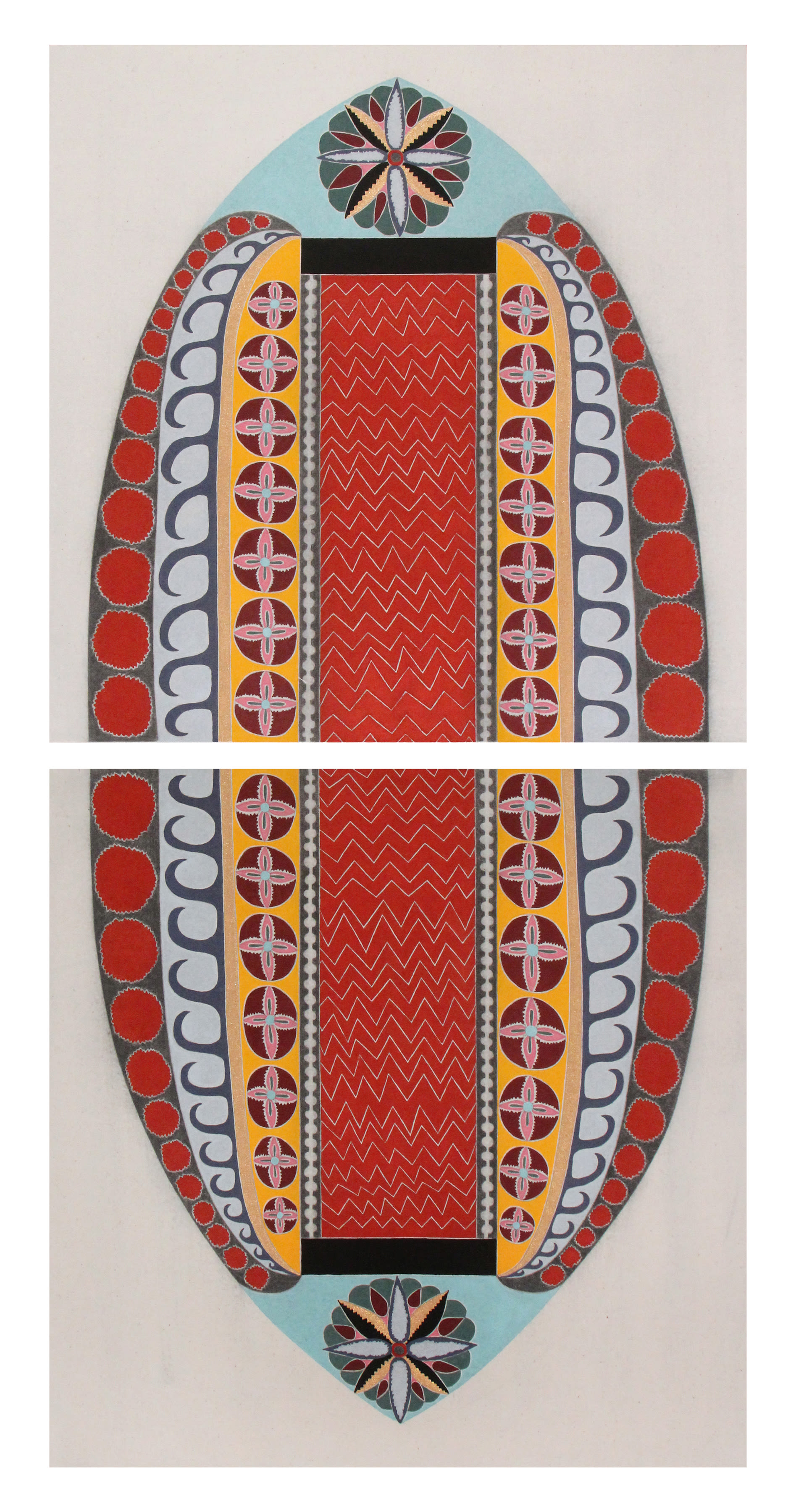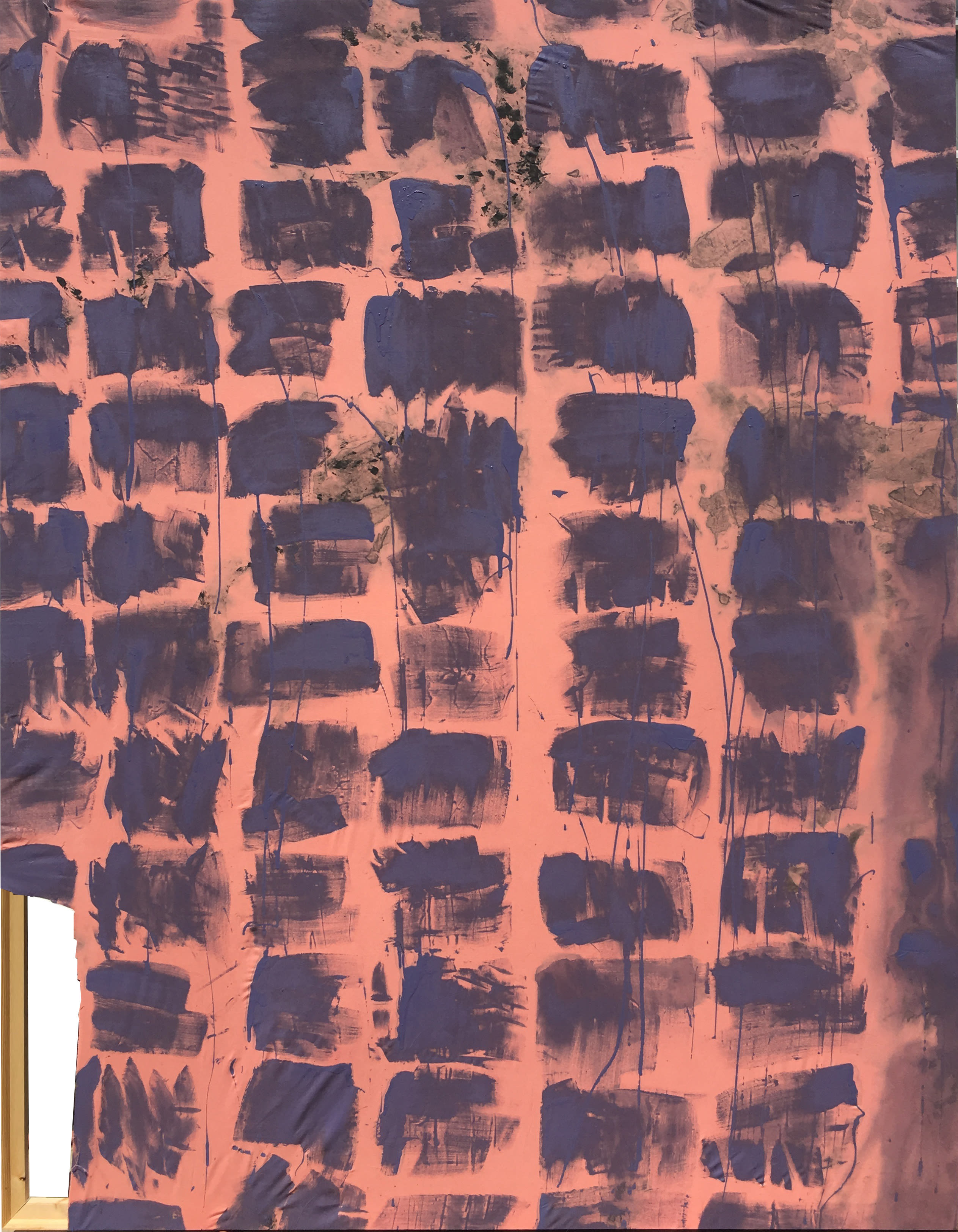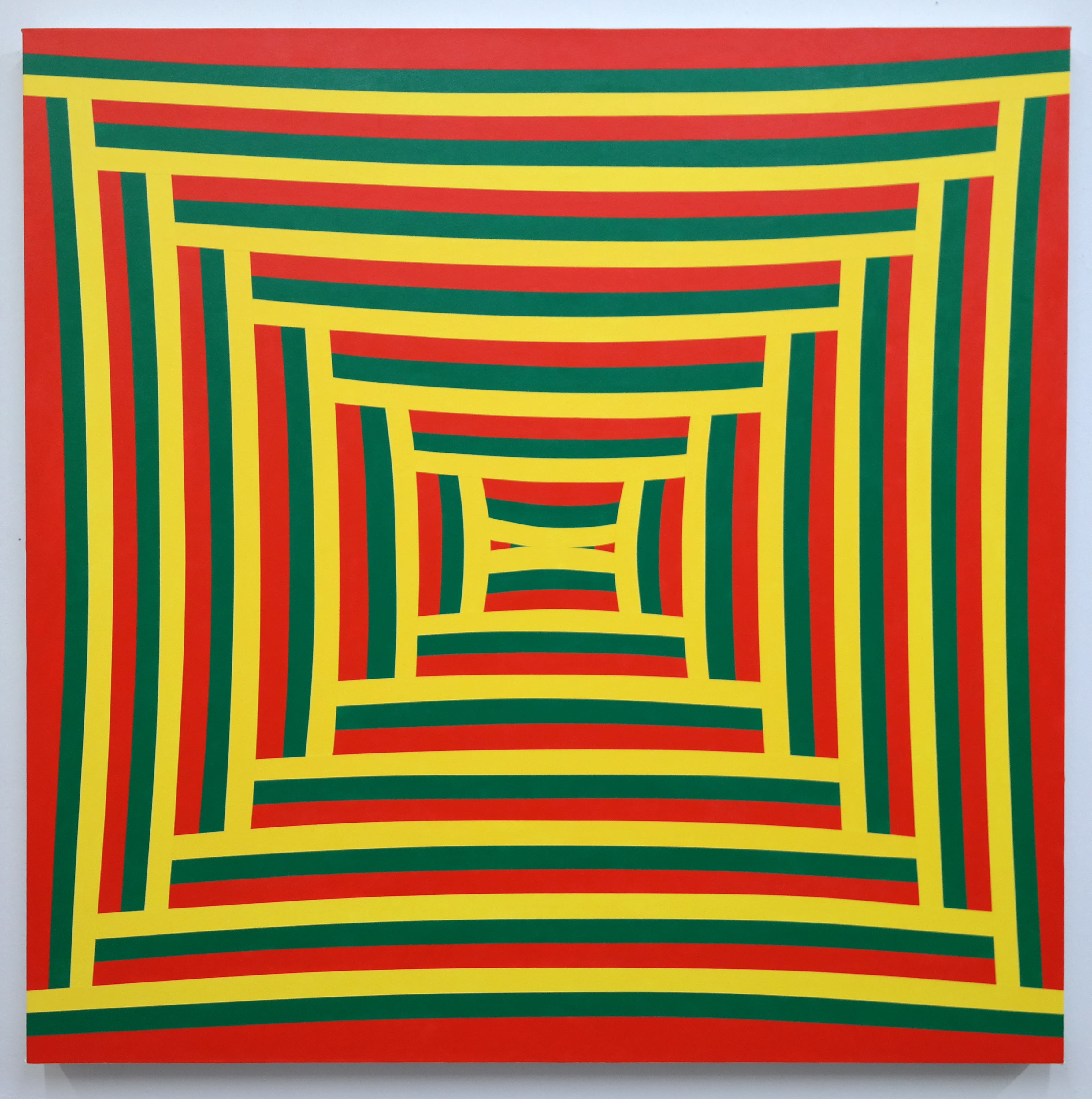 If you count yourself as one versed in the history of modernism, On Repeat offers much intellectual fodder to kick around. Rubinstein writes in a short essay this show aims “to situate [the artists'] work in dialogue with the Supports/Surfaces group of the 1970s,” a short-lived French movement steeped in Maoist politics. He also draws a line to the American Pattern and Decoration movement, which mimicked things like quilts and wallpaper before disappearing amid an '80s feminist backlash. He further explains how several pieces draw inspiration from the "rhythmitized textiles of Africa," recalling how many say the true roots of abstract art reside in ancient Africa, not modern Europe.