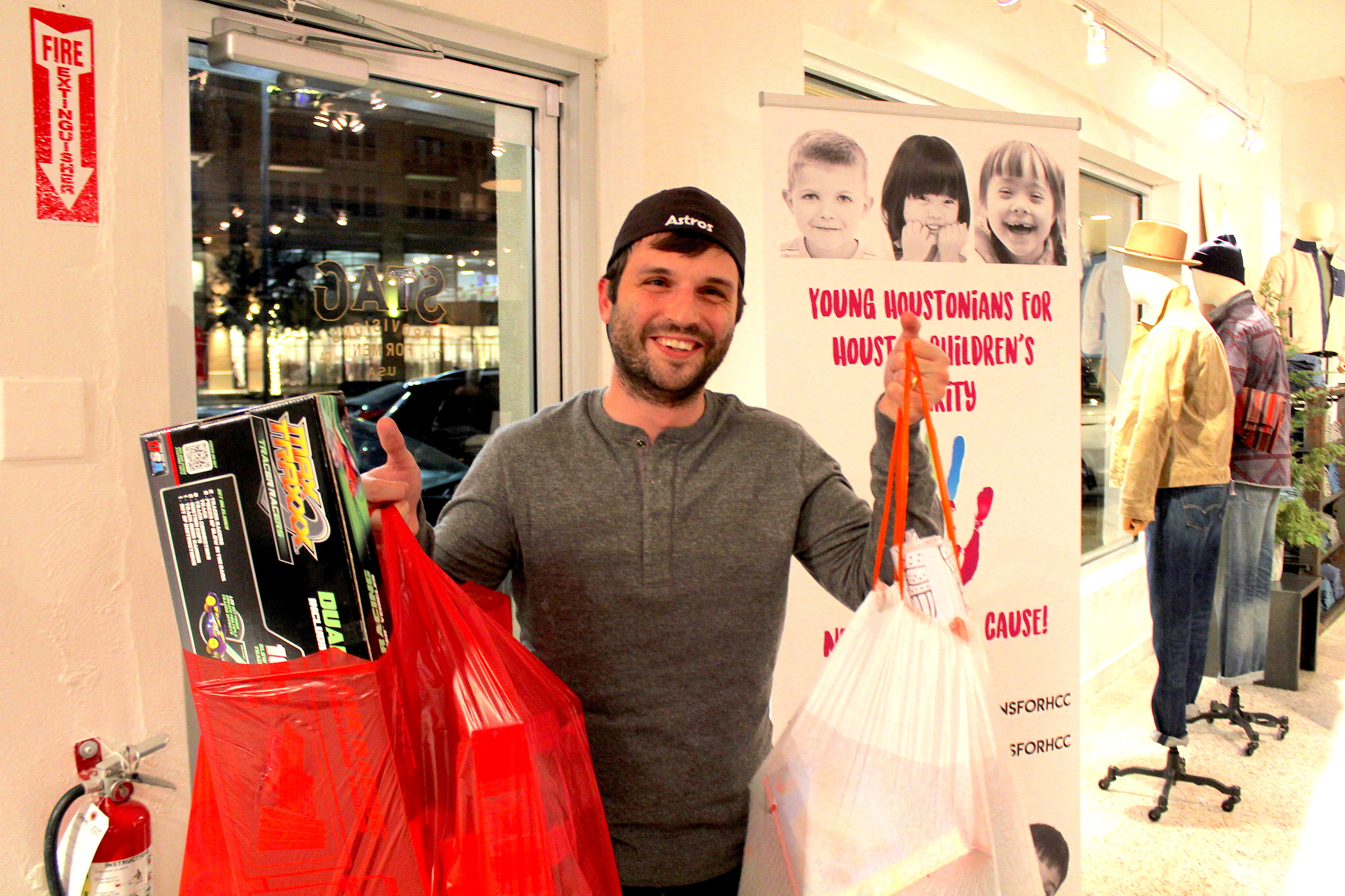 Donated toys and 10% of all the proceeds went to Houston Children's Charity's Christmas program that YHHCC supports. Owner Trevor Meeks of Toys for Love showed up donating two huge bags of toys!