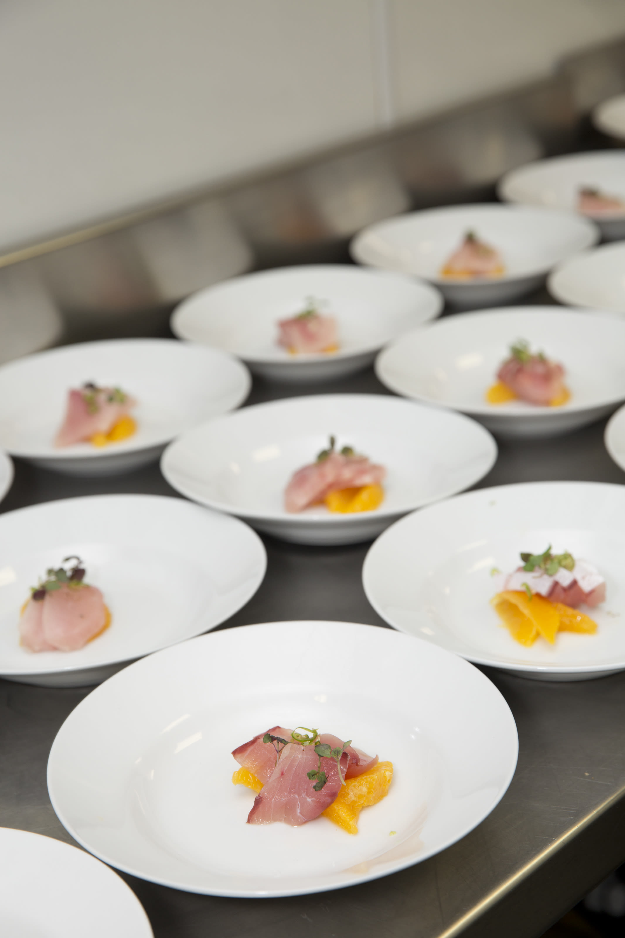The first course included plantain-crusted rice fritters, black beans and pickled fruit by Nick Fine, Culinary Director of Underbelly Hospitality, and soloist Mónica Gómez. Next was Hama chili with yellowtail, orange, Thai chili and ponzu by Chris Davies, Chef de Cuisine at Uchi, and soloist Harper Watters.