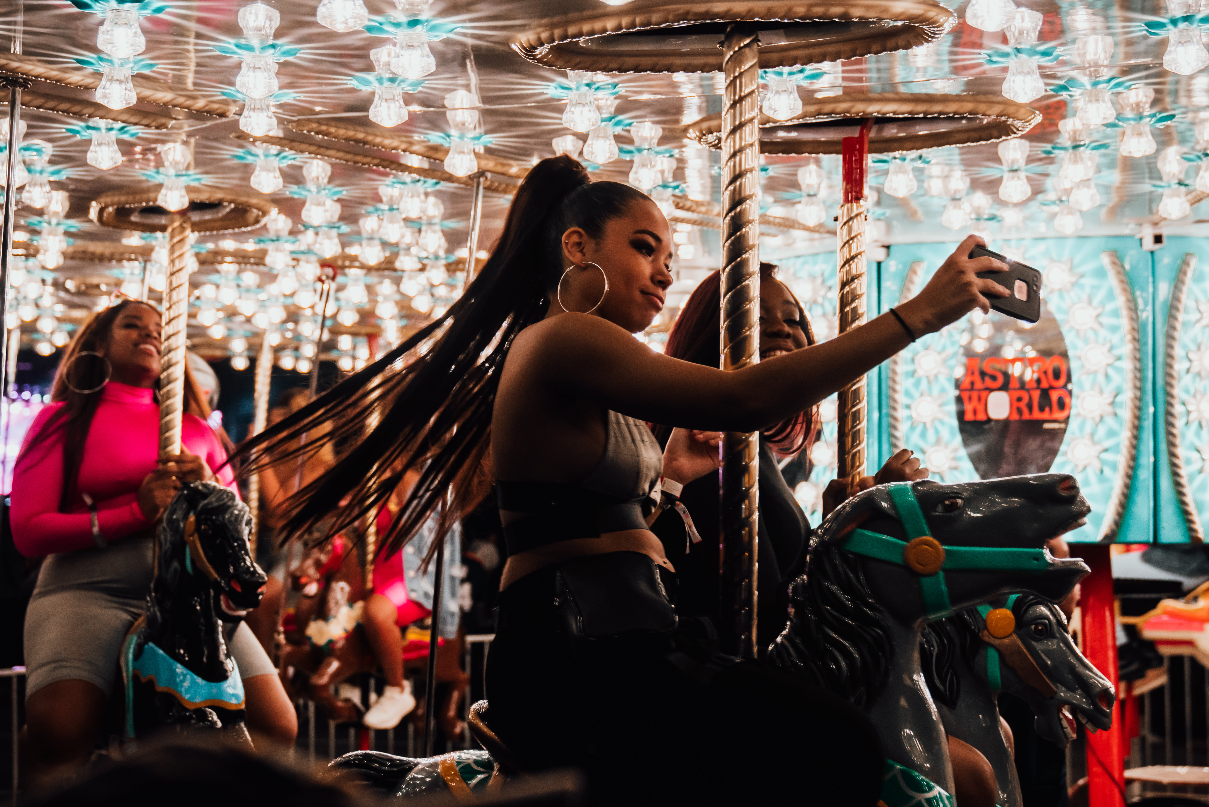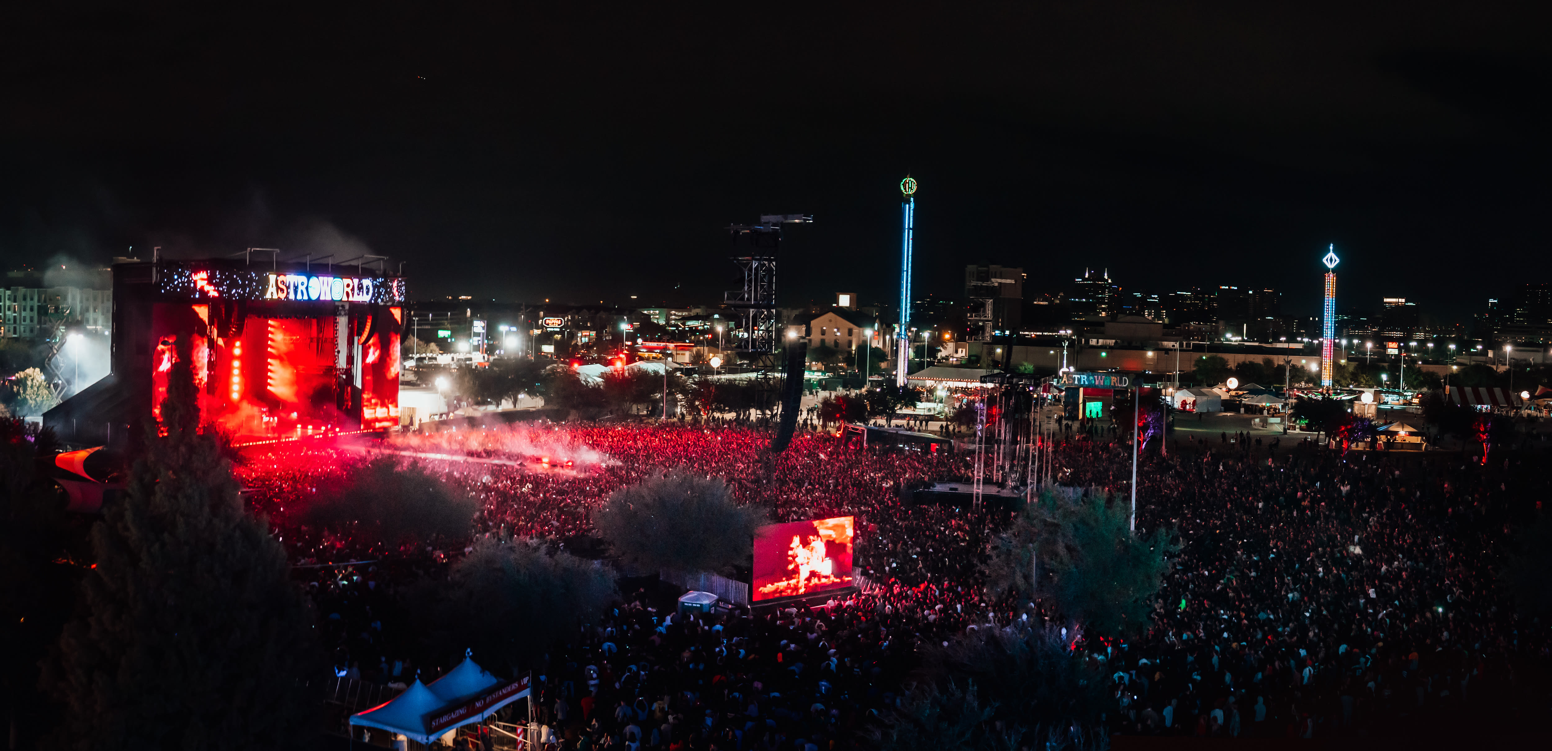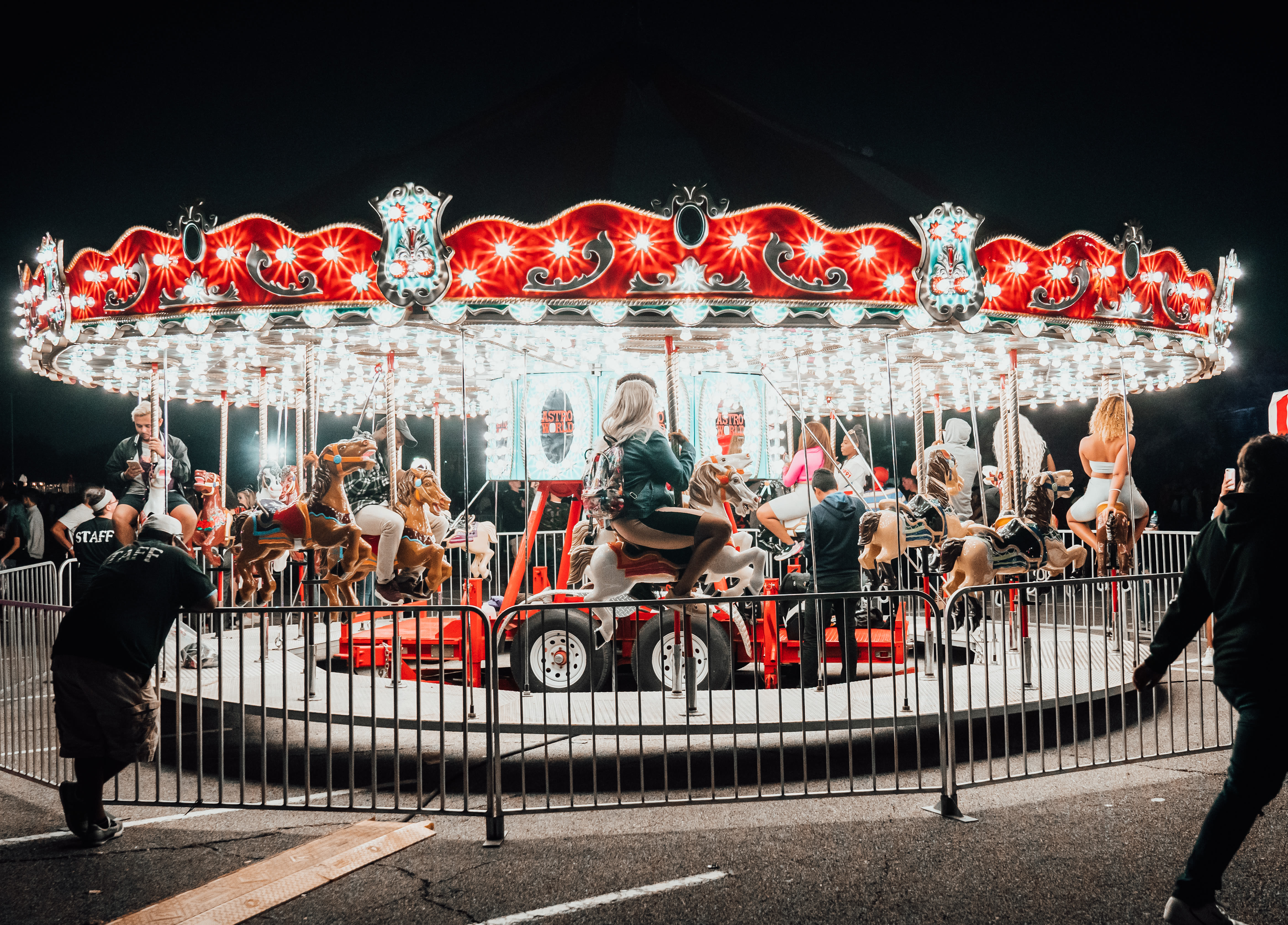 For a second, you might have thought you really were at AstroWorld. The location was right, and there were the rides—ferris wheel, drop tower, carousel, swings—and the carnival games and concessions. There was face-painting, balloon animals, and performers on stilts.