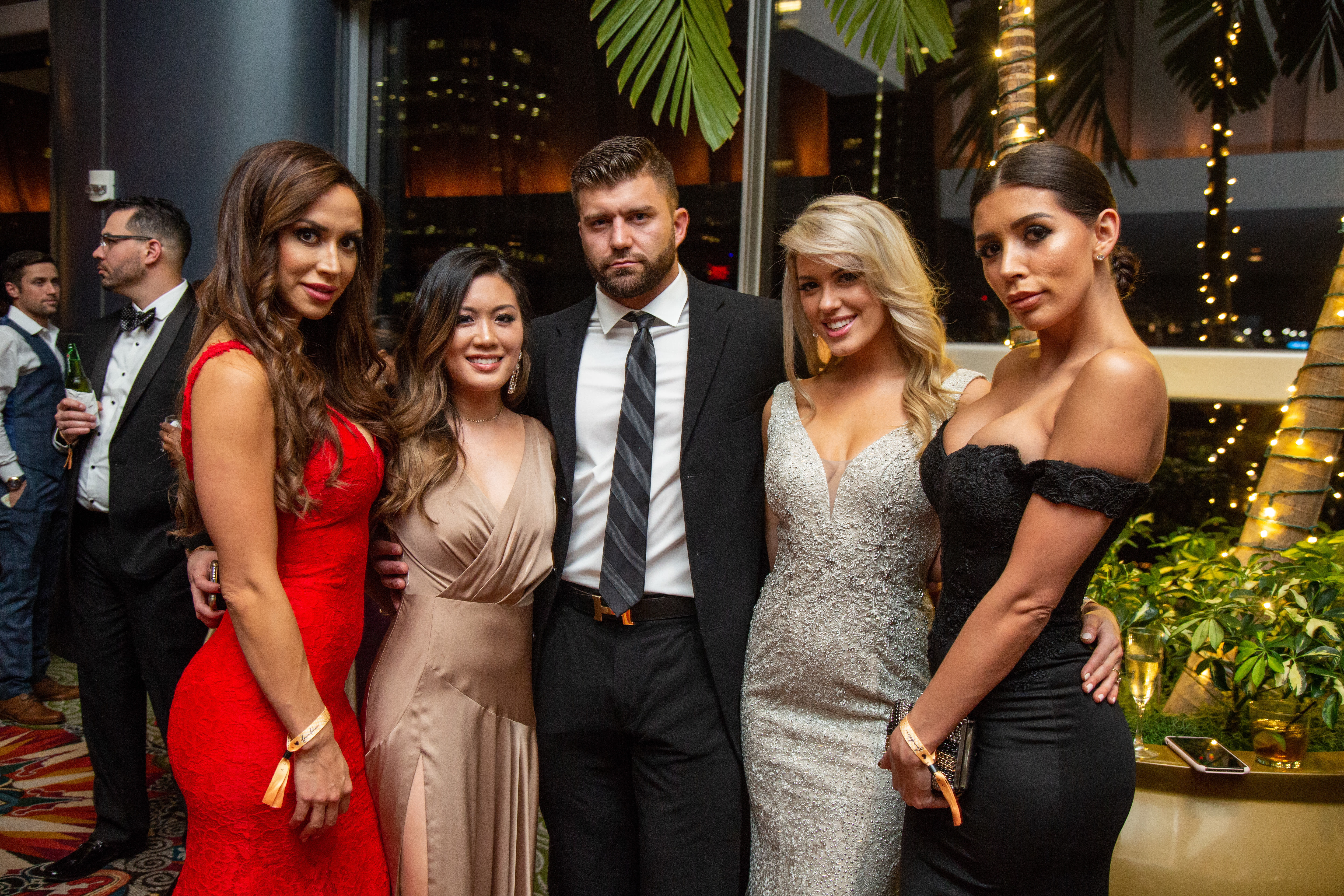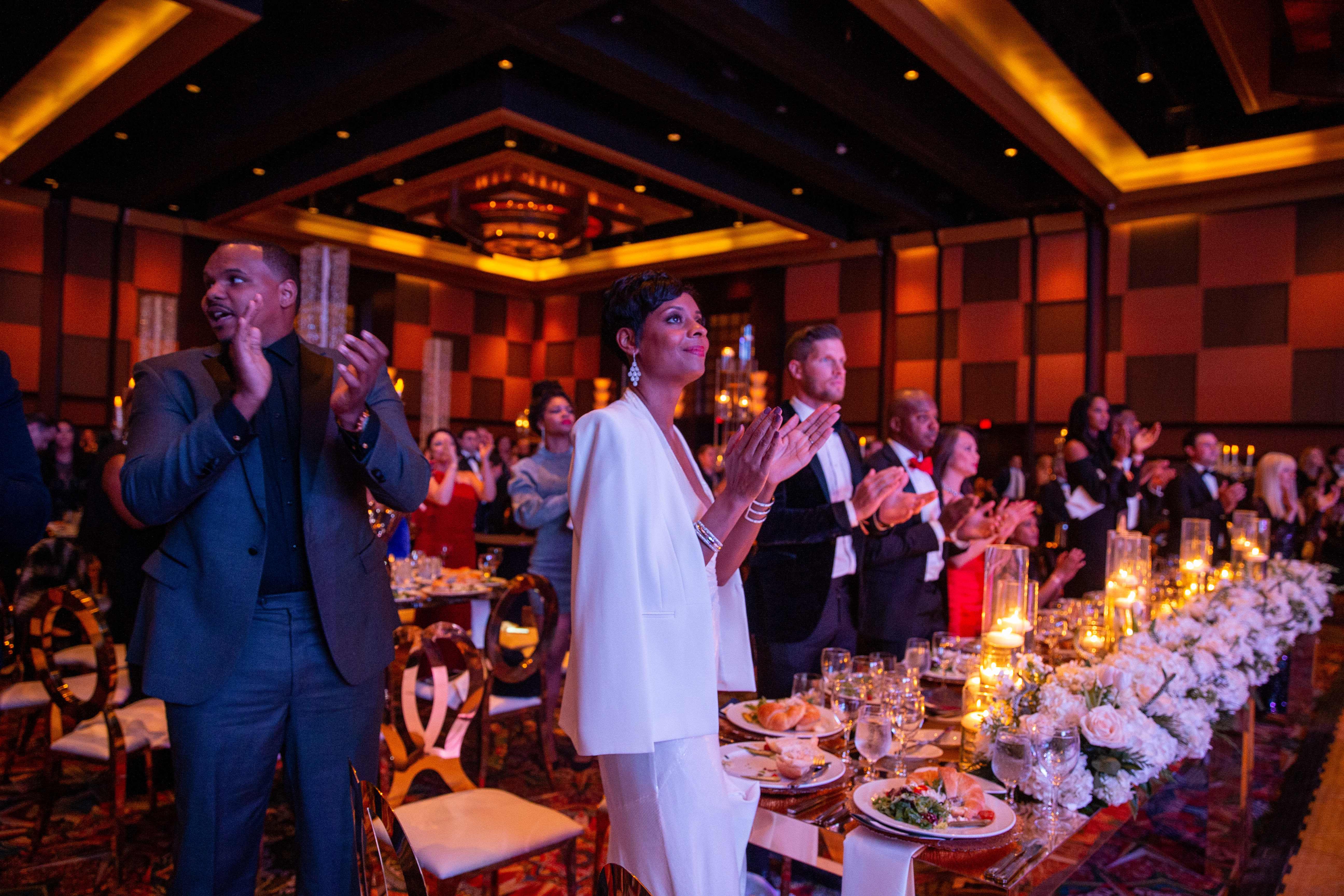 A black-tie red carpet and cocktail hour preceded a glitzy program in the grand ballroom, transformed by decor from Décor 2 Remember and entertainment by high-flying aerialist acrobats and music from Divisi Strings and Collide. High-profile guests ran the gamut from actors to pro athletes, including Bollywood star Nargis Fakhri; former Houston Texans Chester Pitts, Andre Johnson, Travis Johnson, Wade Smith, and Kevin Walter; former Houston Rocket Carl Landry; 2018 Masters Champion Patrick Reed; and Brennan Scarlett, who's currently on the Texans roster.