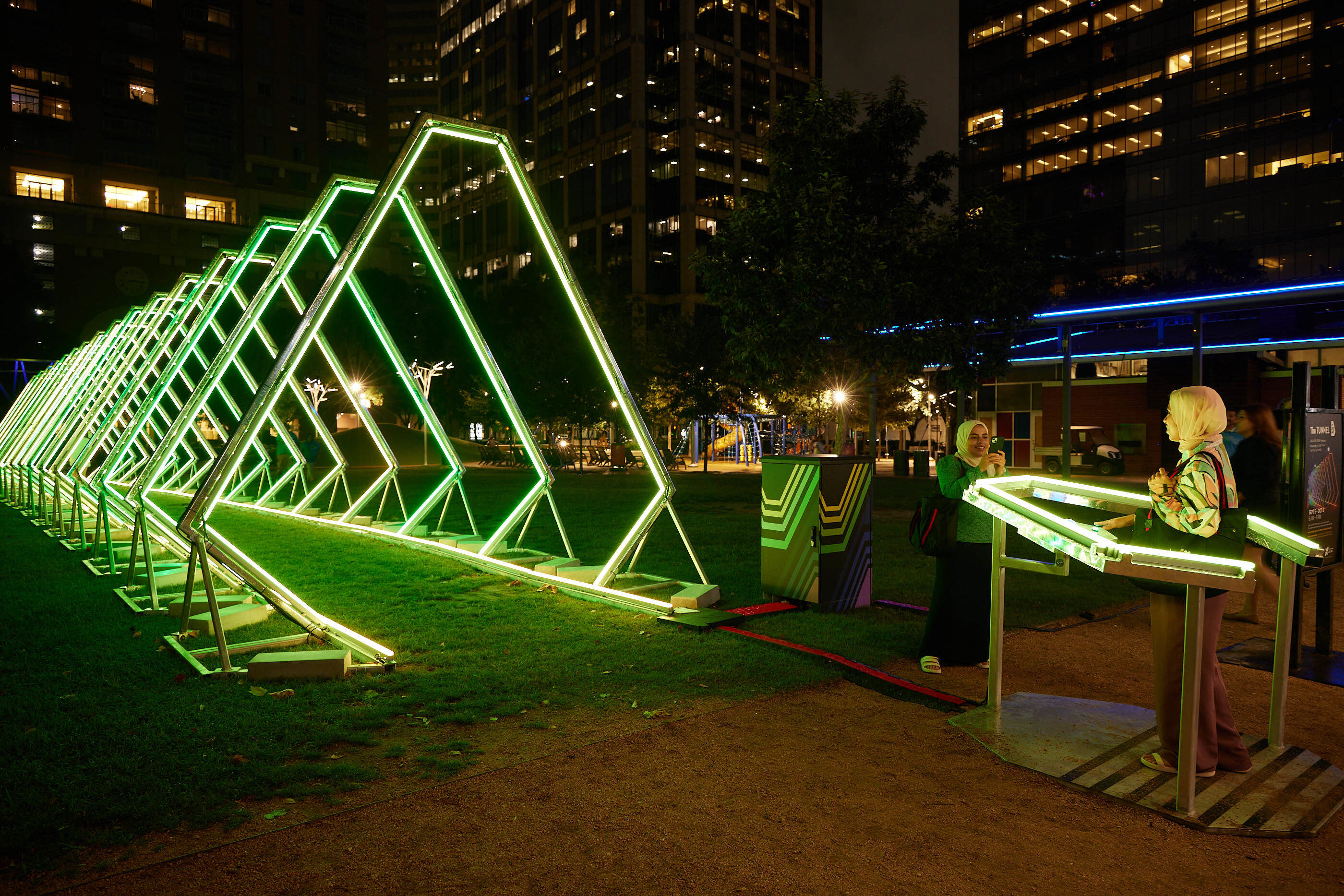 The celebration will encompass several areas of Discovery Green including the park’s Grace Event Lawn, the artworks Synchronicity of Color and Listening Vessels, and even a parking garage stairwell. (Oliveros often performed and recorded in underground spaces such as lava caves and cisterns.) There’ll be plenty of opportunities for audience participation, but don’t worry; if you’re not a deep listening devotee, performers will lead you through.
