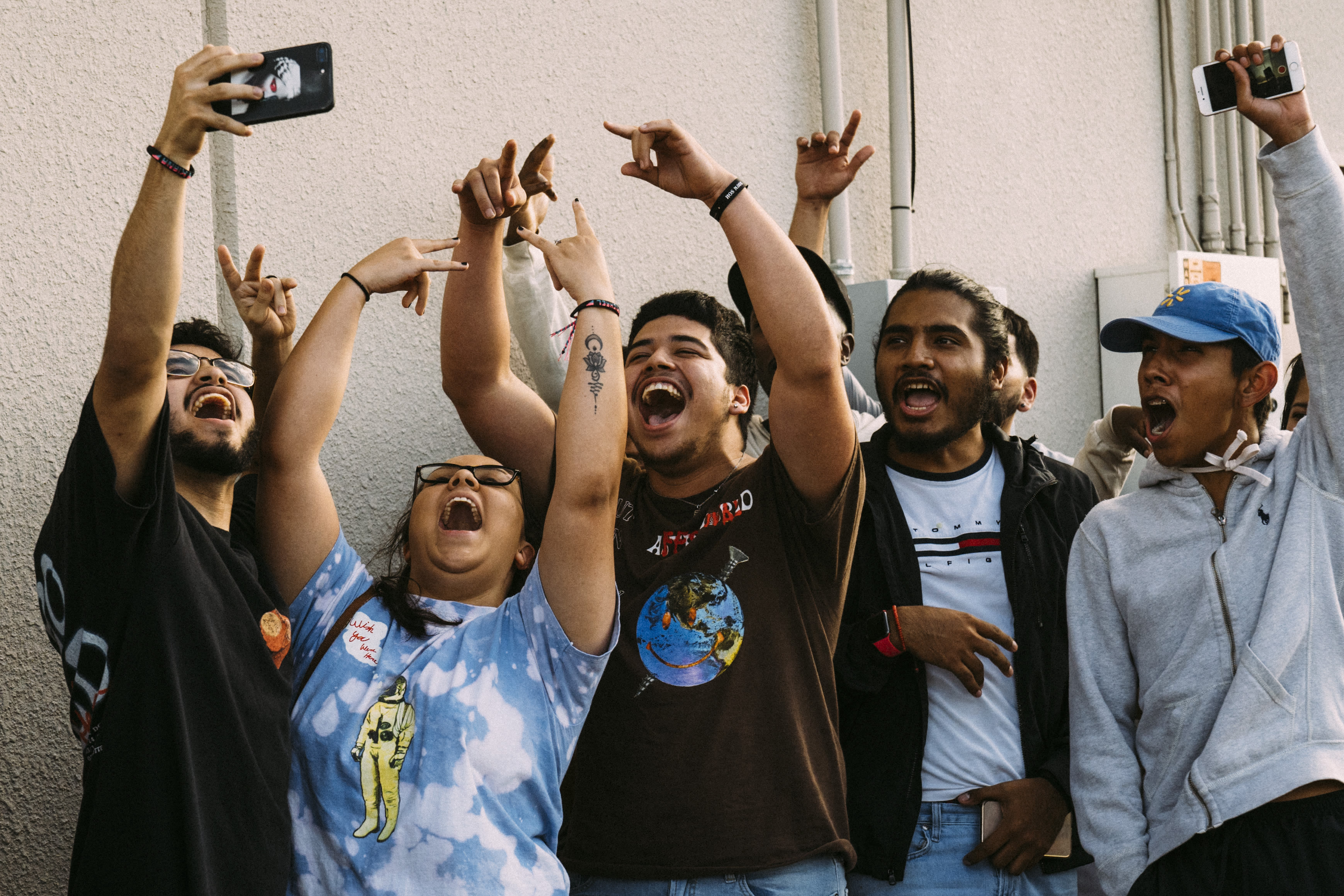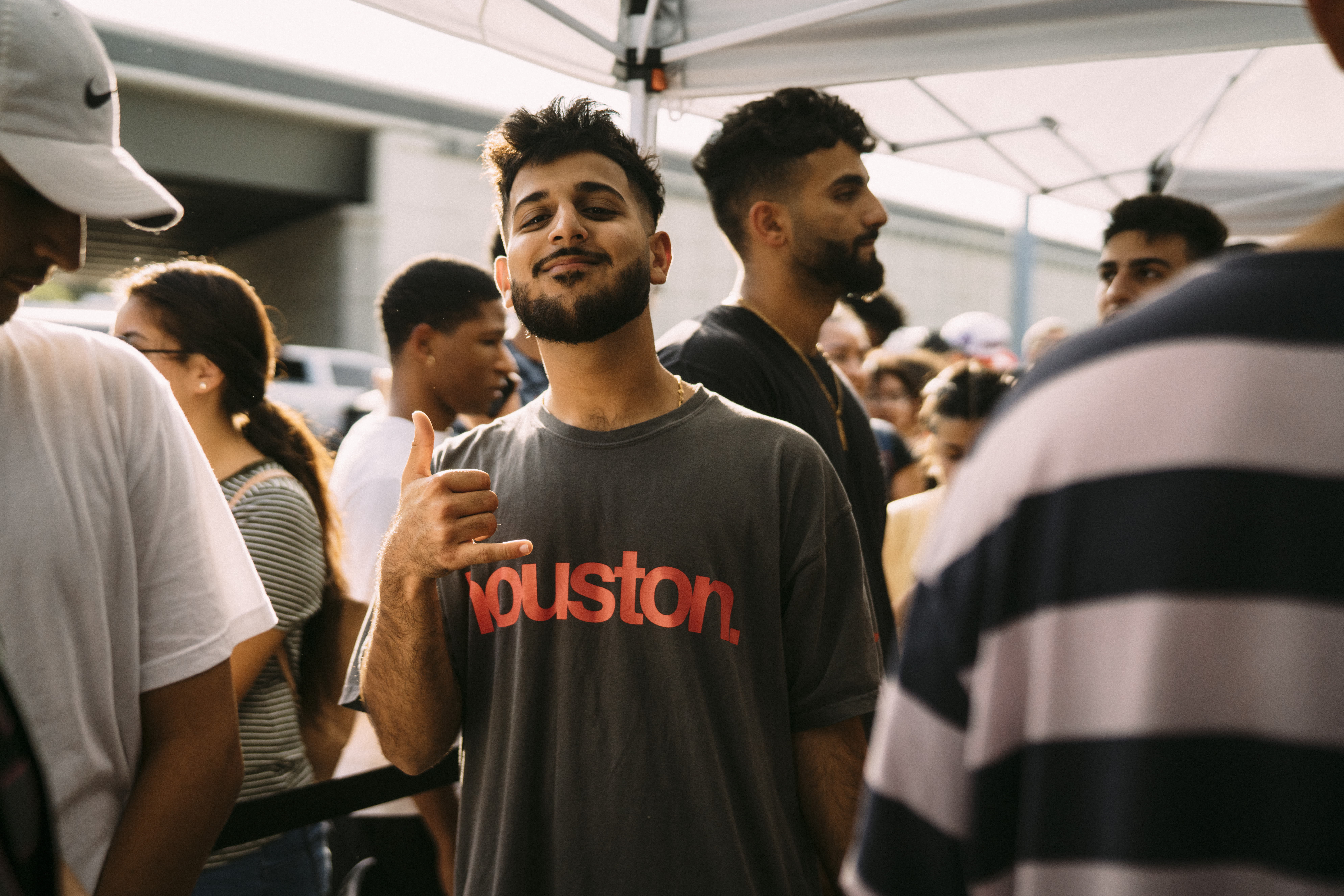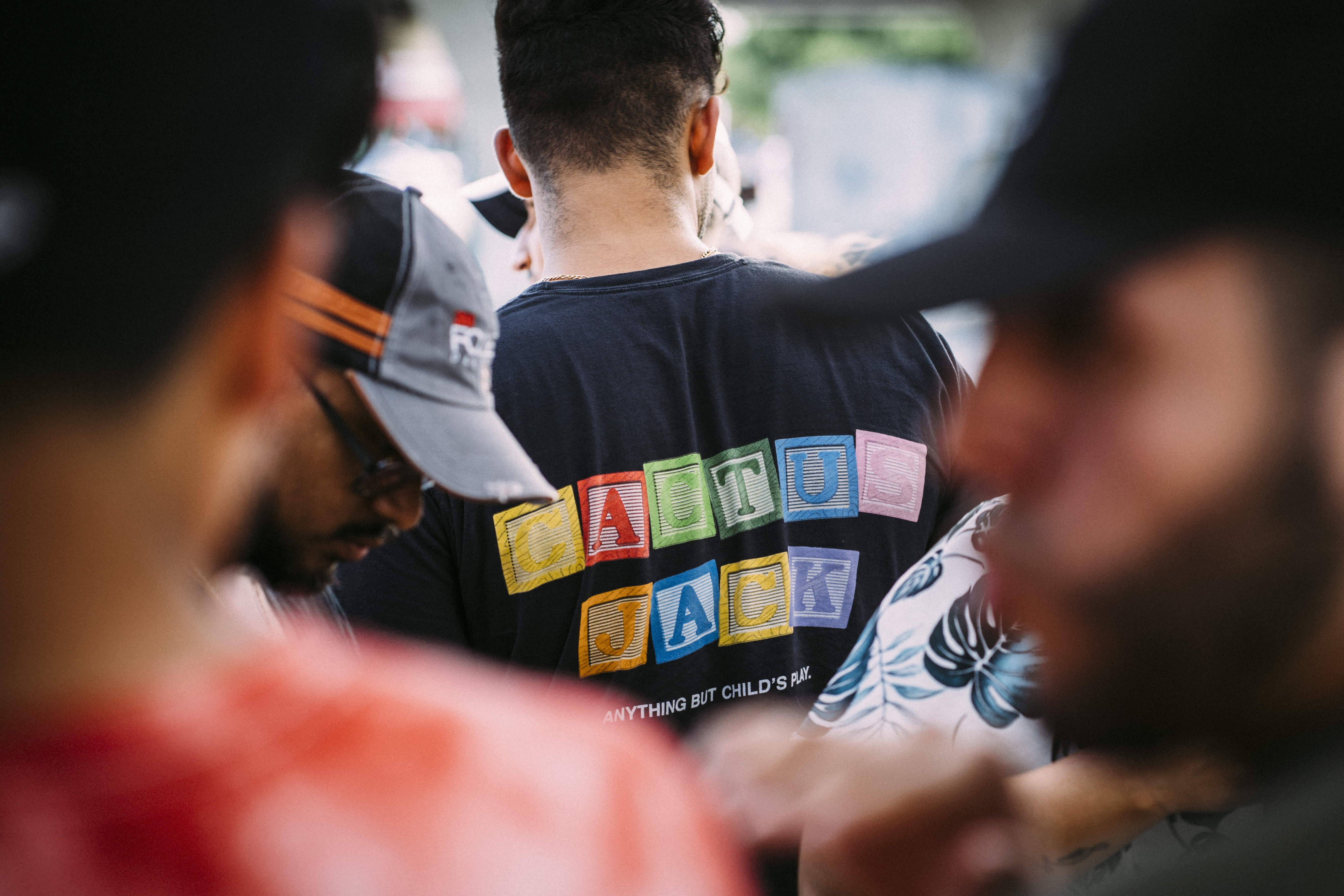 He listed the address for Movie Exchange in Northwest Houston just off 290 where fans immediately flocked—in droves. Clad in Astroworld and Cactus Jack merch, they lined up outside the movie store and around the strip mall and its parking lot for a chance to glimpse their hometown celebrity, who arrived surrounded by security.