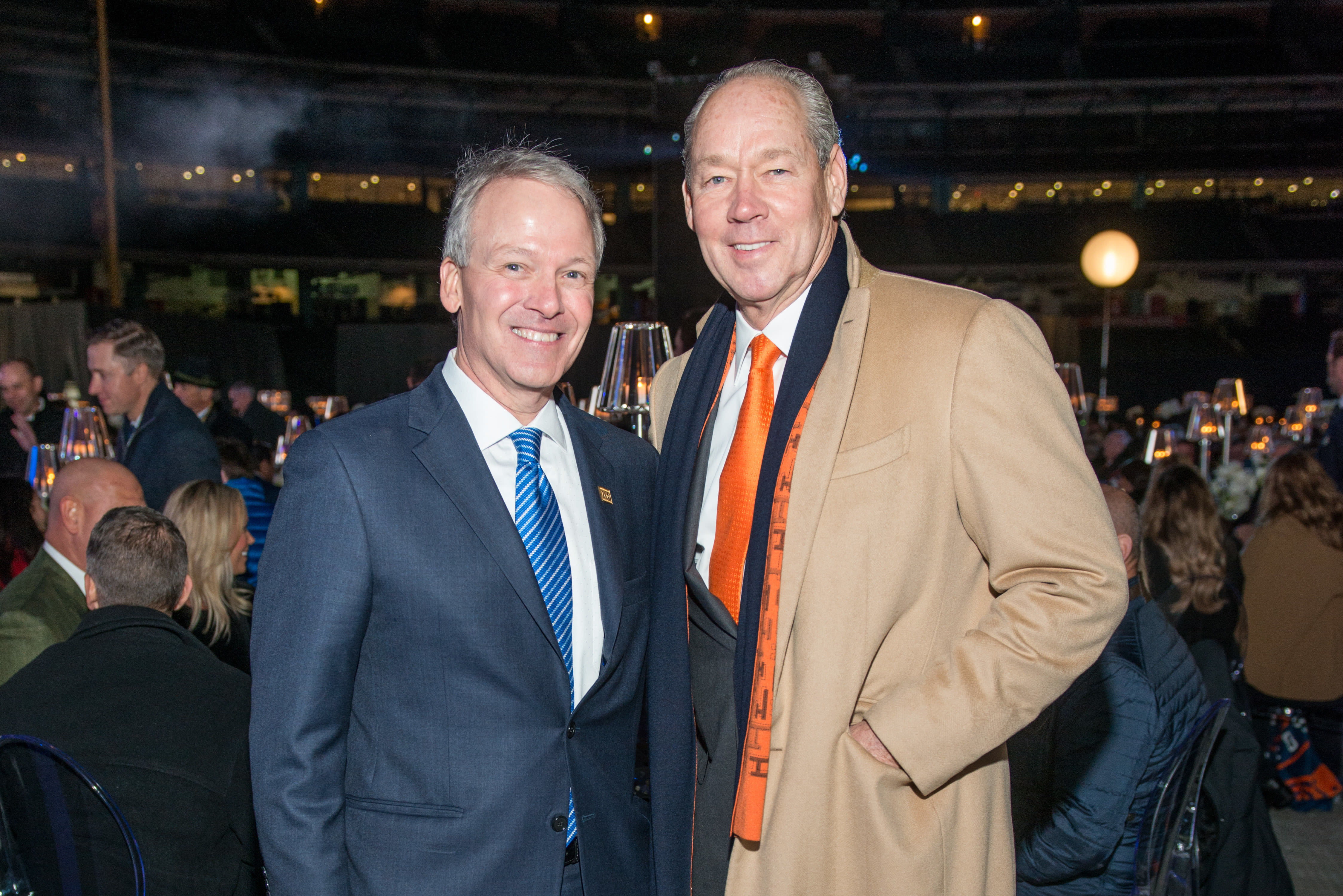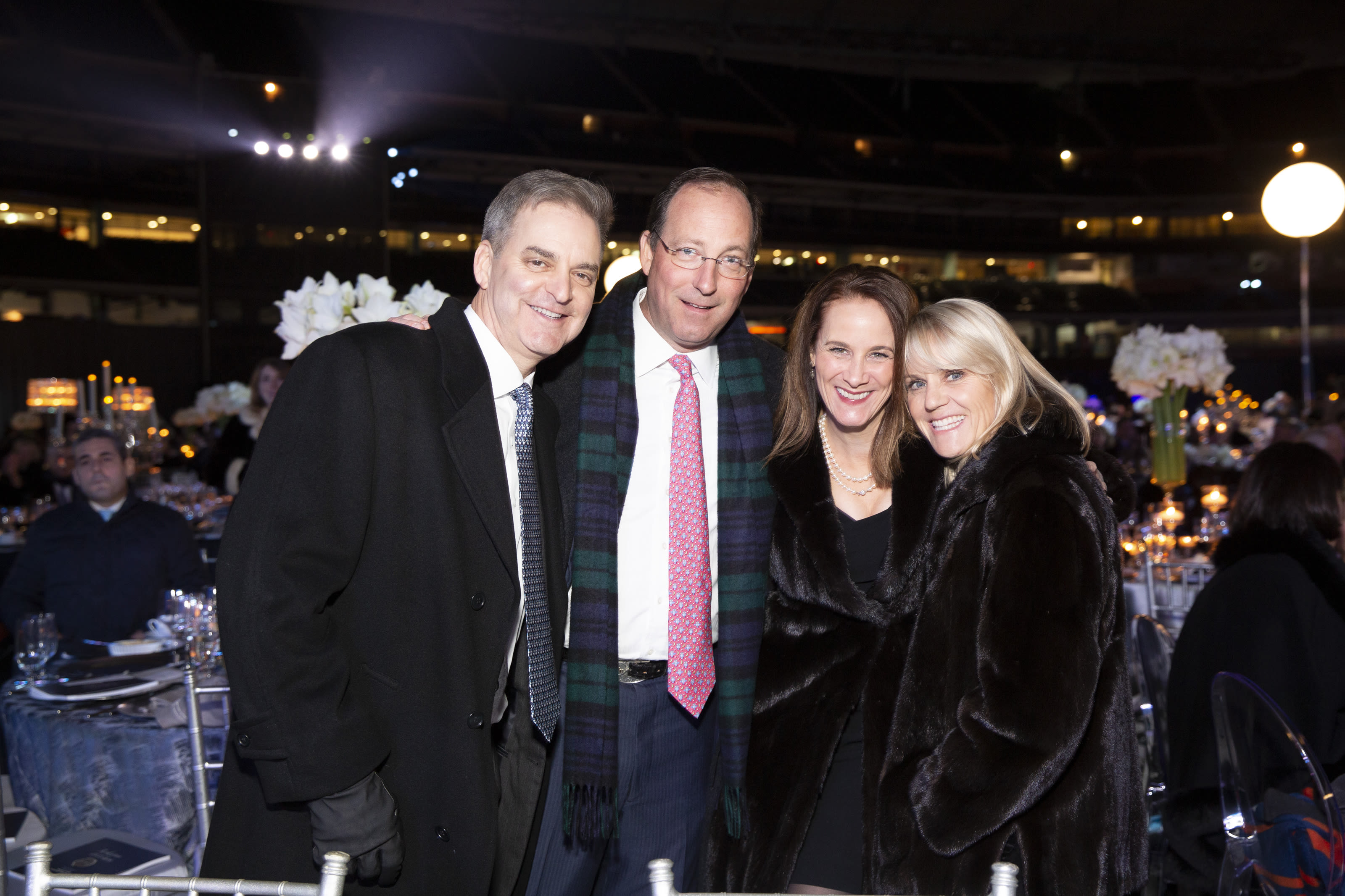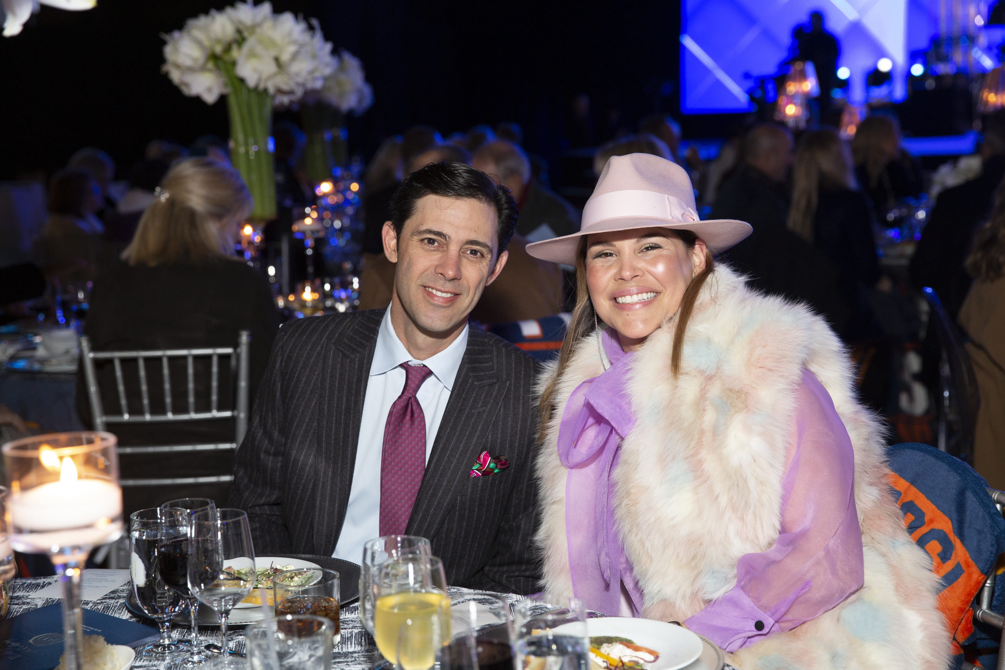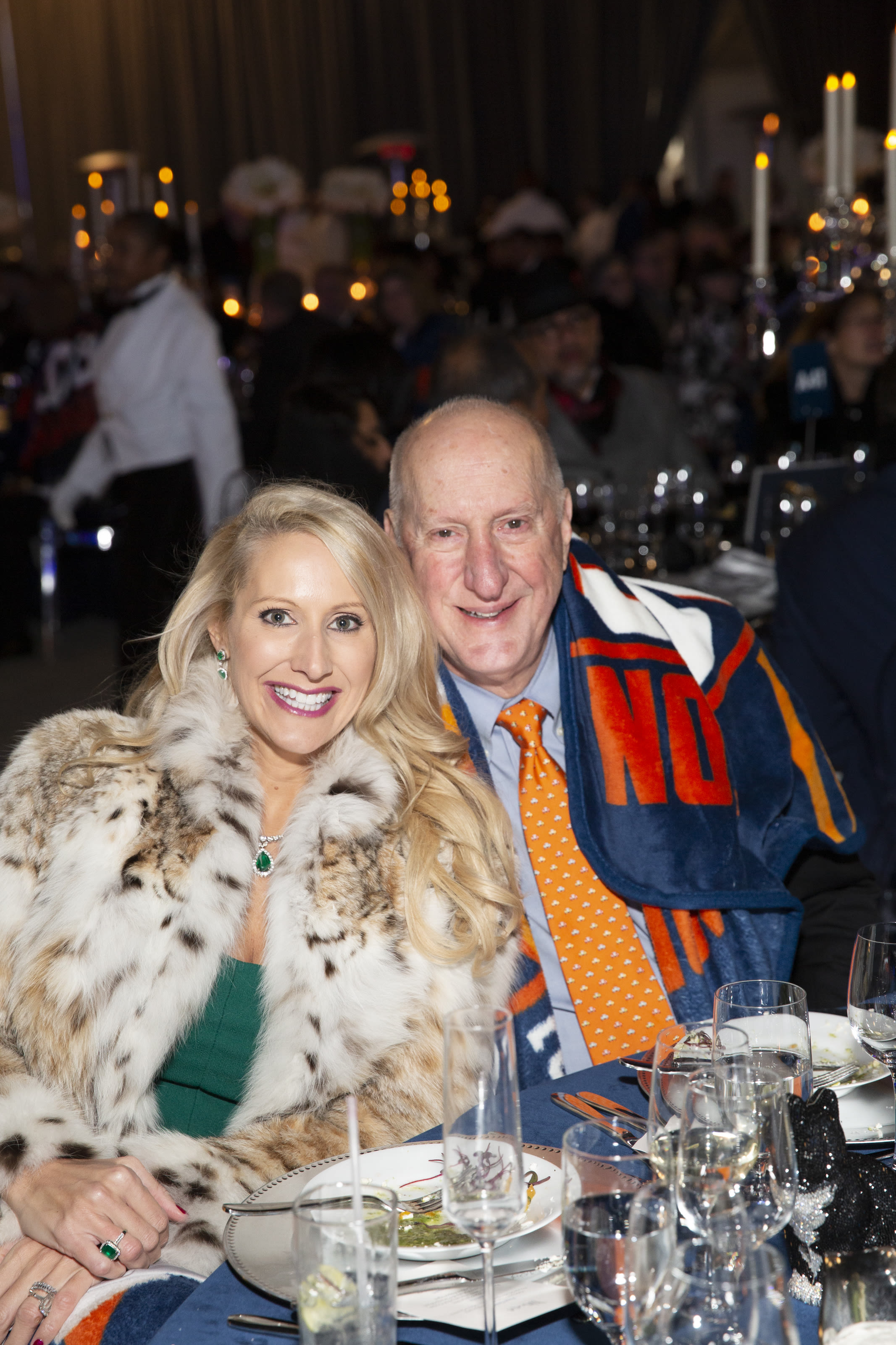 Many partygoers wore fur, which remained on for the duration of the program; those who didn't—and even some who did—made good use of the fleece blankets. That included event emcee and legendary NFL sportscaster Jim Nantz, who eventually brought his blanket up onstage to the podium. He joked that a ribbon-cutting for Houston Methodist's new "hypothermia wing" would immediately follow the centennial gala.