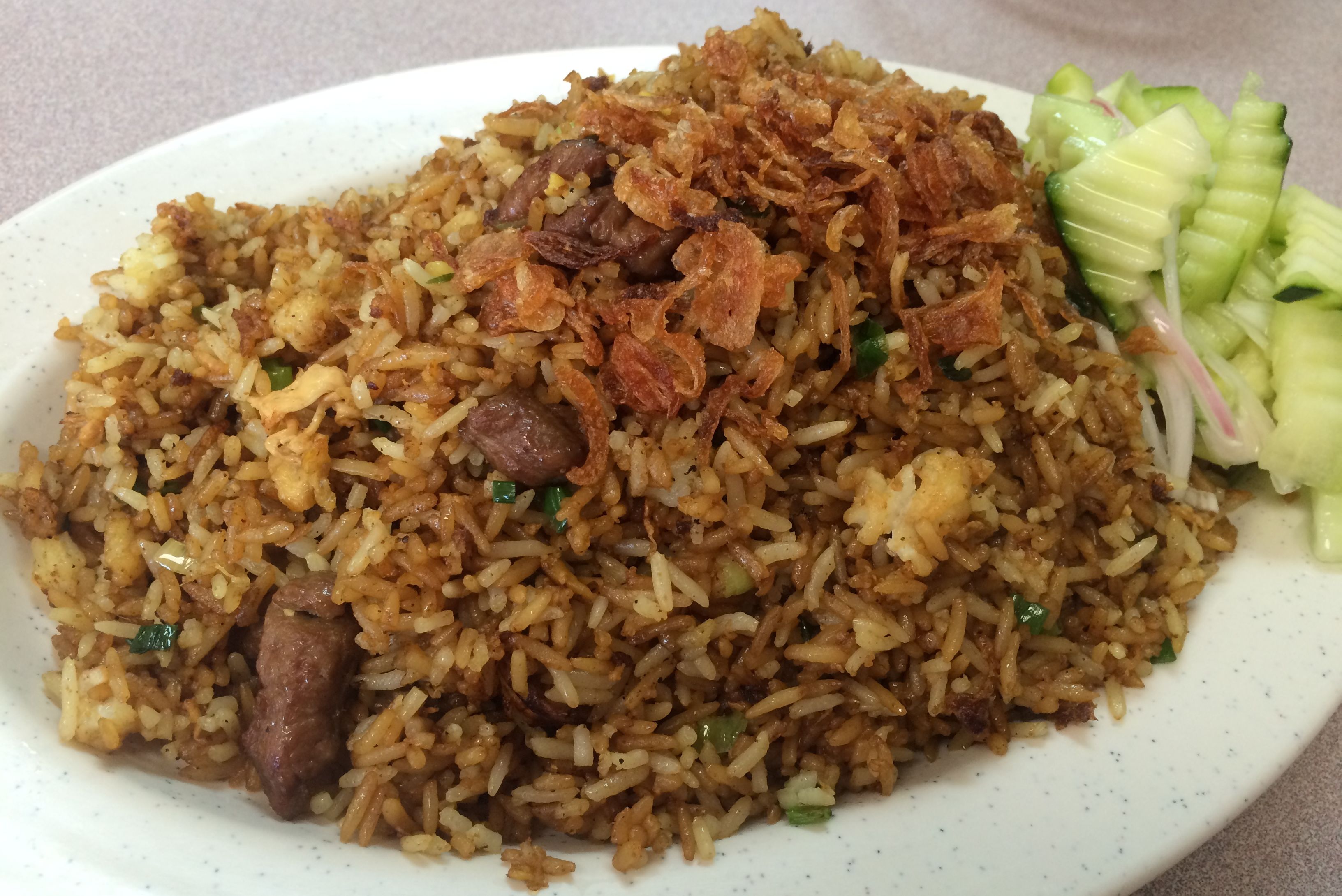 Sayad displays whole fish on ice just like Tampico, the Mexican seafood restaurant on Airline near 610. You select a fish at the counter at a given price ($14.99 a pound for red snapper), and the chef grills it for you. Our Persian waiter told us that the original Sayad restaurant is in New Jersey--the chef here at the Westheimer location is Palestinian. He described the food as spicy Arab-style cuisine. (He also told us where we could go to find milder Persian flavors.)