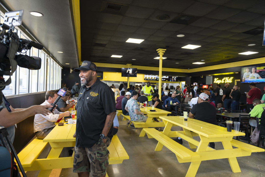 It’s been an emotional morning for Bun B, as he watched the culmination of years of hard work play out. “Three minutes ago, I had tears coming down my eyes,” he said. “This was just an idea. [My partners] brought me the burger, and I had to really consider being a part of the business because I understand all of the commitment it takes to really get a new business off the ground. We’ve gone through a lot of hardships. A lot of things have happened behind the scenes with this company. Nevertheless, we persevered, and here we are in an actual brick-and-mortar location. For a guy who gets paid to use words, I don’t have very many right now.”