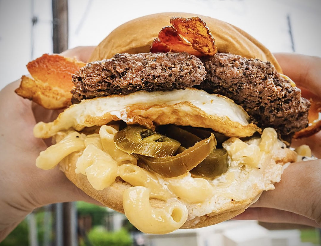 Another fan favorite is the Grim burger, which was created by one of Lankford’s customers over 20 years ago. It’s made with mac and cheese, jalapeños, bacon, cheddar cheese, and a sunny-side up fried egg.