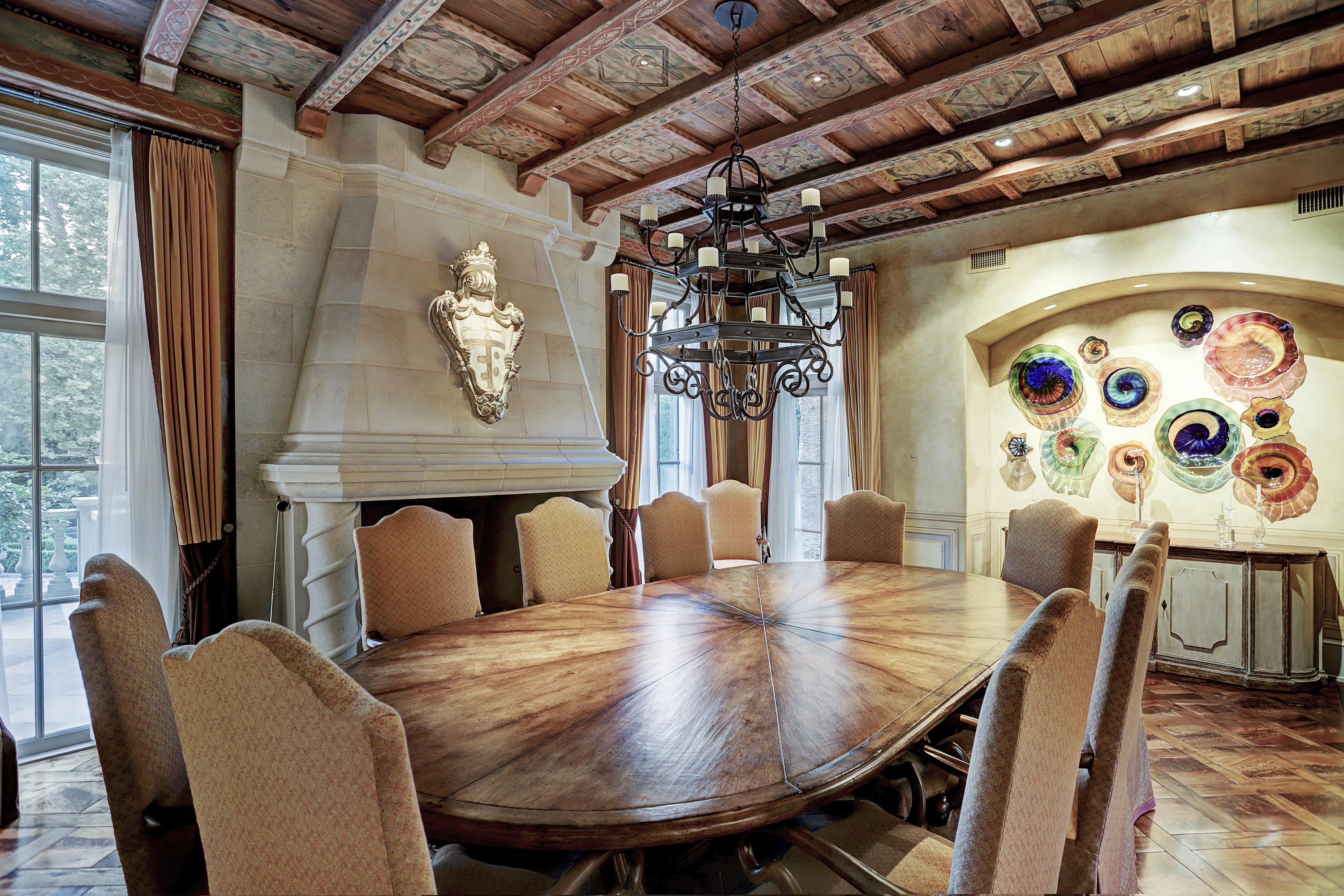 A perfect example of Tuscany meets Texas—complete with a stone-walled bridge and a 12-foot custom glass chandelier—will stun guests, while an oversized gallery can easily house 10 round tables for any celebration (or Italian family gathering).