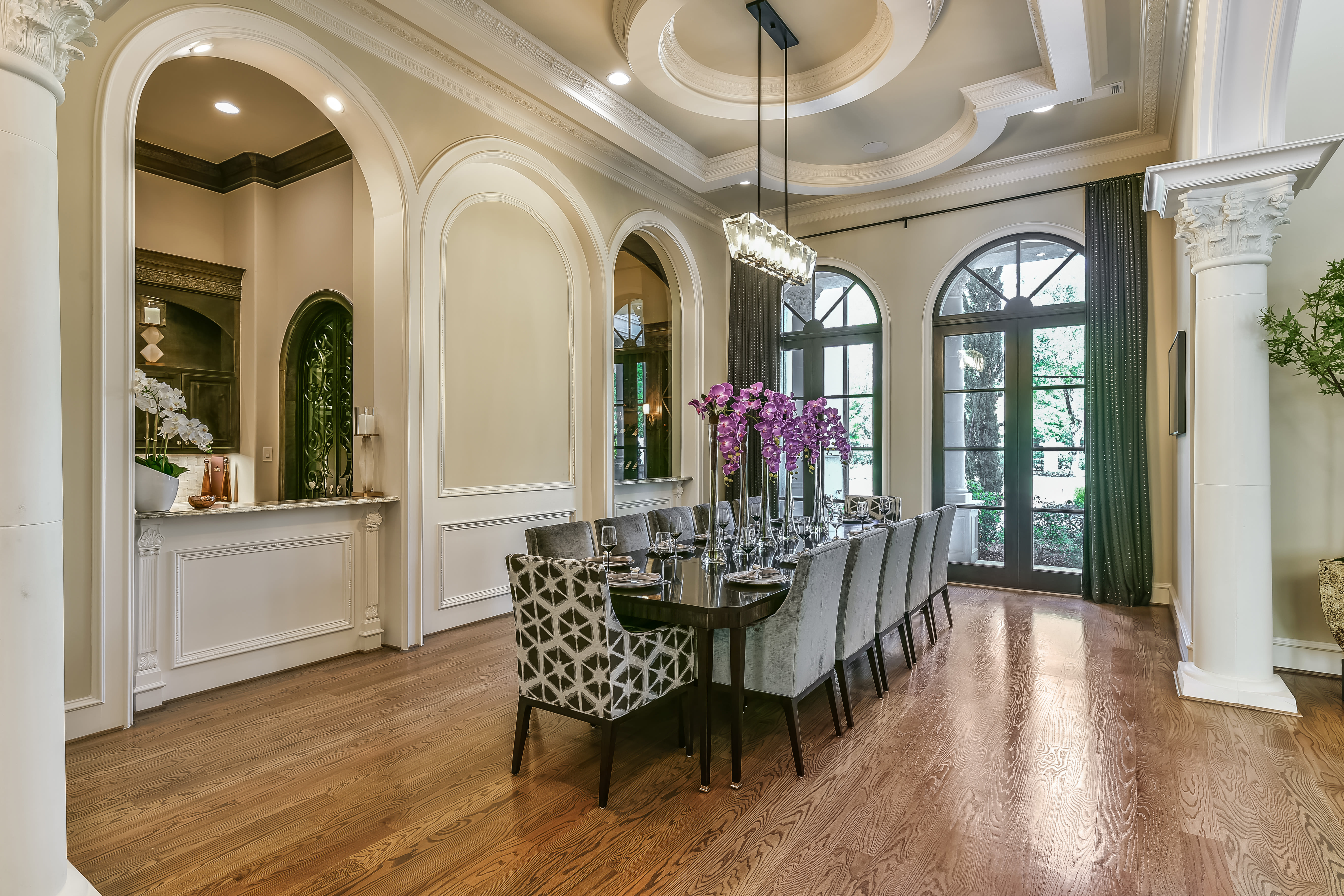The West Grand Regency address couldn’t be more apropos—who else but a royal could possibly live in this palatial estate, with its grand, columned entry and soaring, groin-vaulted ceilings frosted with layers of ornate molding?