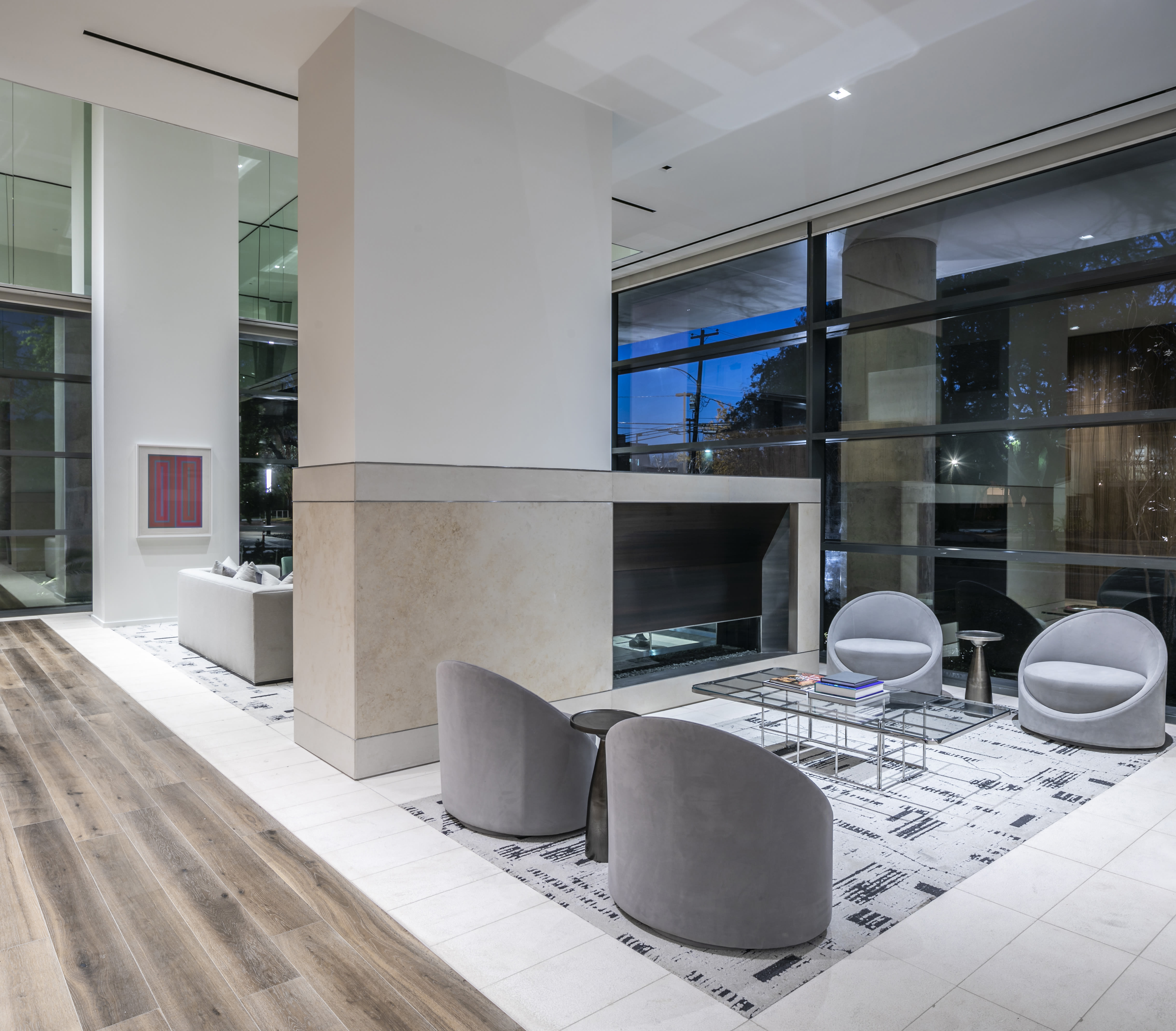 There are 18 hotel suites on the ground level of the residential tower, which is home to 265 luxury full-time residences above, accessible via an art gallery and outdoor plaza. The tower, designed by Munoz + Albin, is intentionally meant to contrast the historic mansion below with sleek, modern lines and a 45-foot-tall mural by French street artist Blek Le Rat on the exterior.