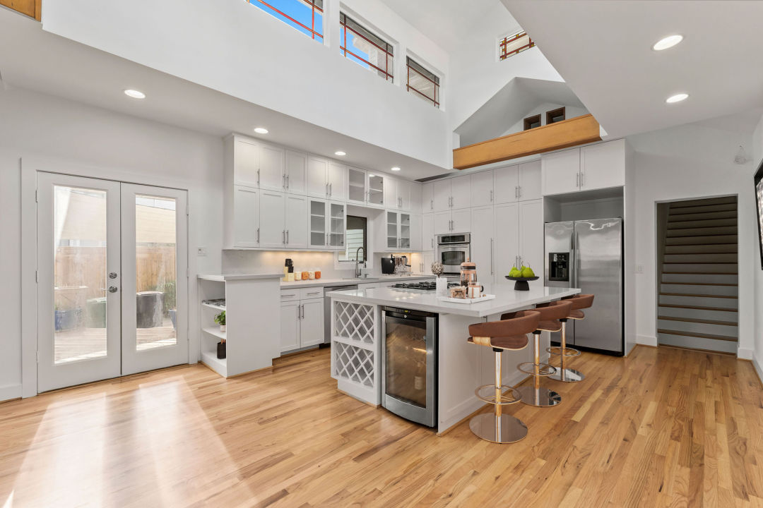 Plenty of natural light pours into the kitchen area of this Heights bungalow.