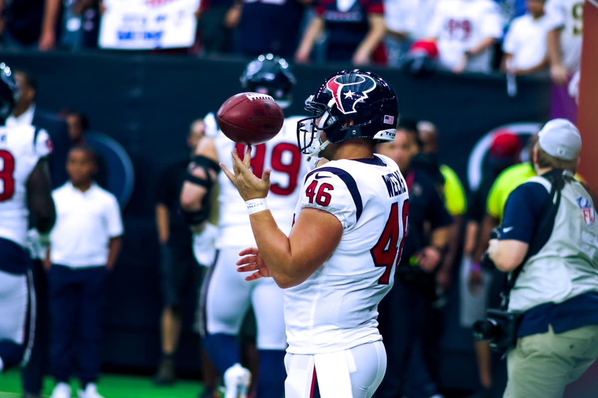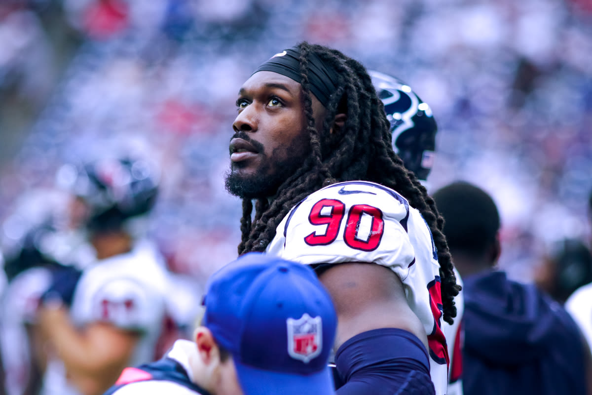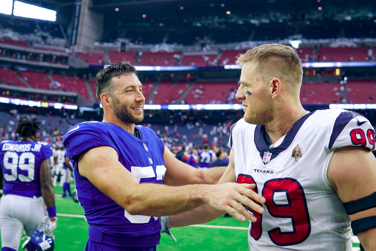 Former Texans fan favorite Connor Barwin, now a member of the Giants, had a chance to connect with his old team after the game. He was all smiles as he was greeted by Whitney Mercilus, JJ Watt, and Jon Weeks.