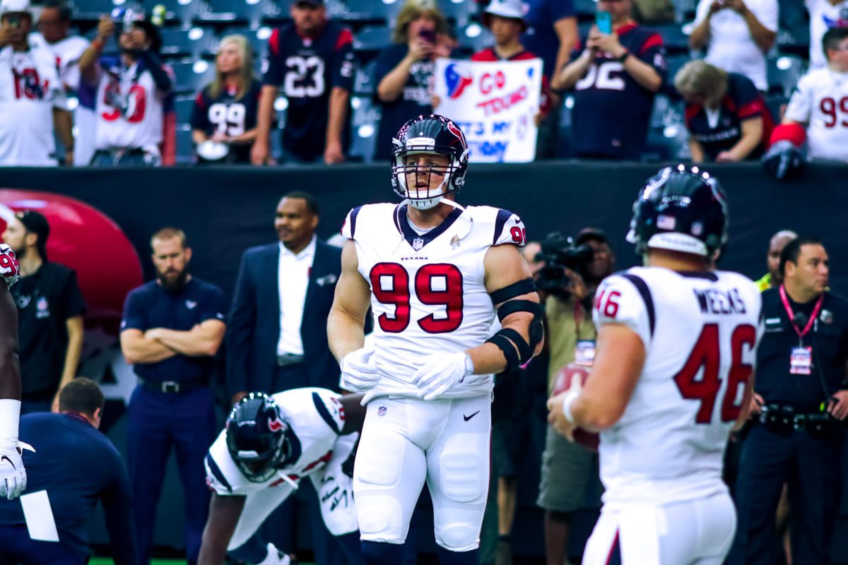 The Texans defense lead by JJ Watt kept the game within reach in the second half. Watt recorded three sacks in the game, along with three tackles for loss, four quarterback hits, and a forced fumble.