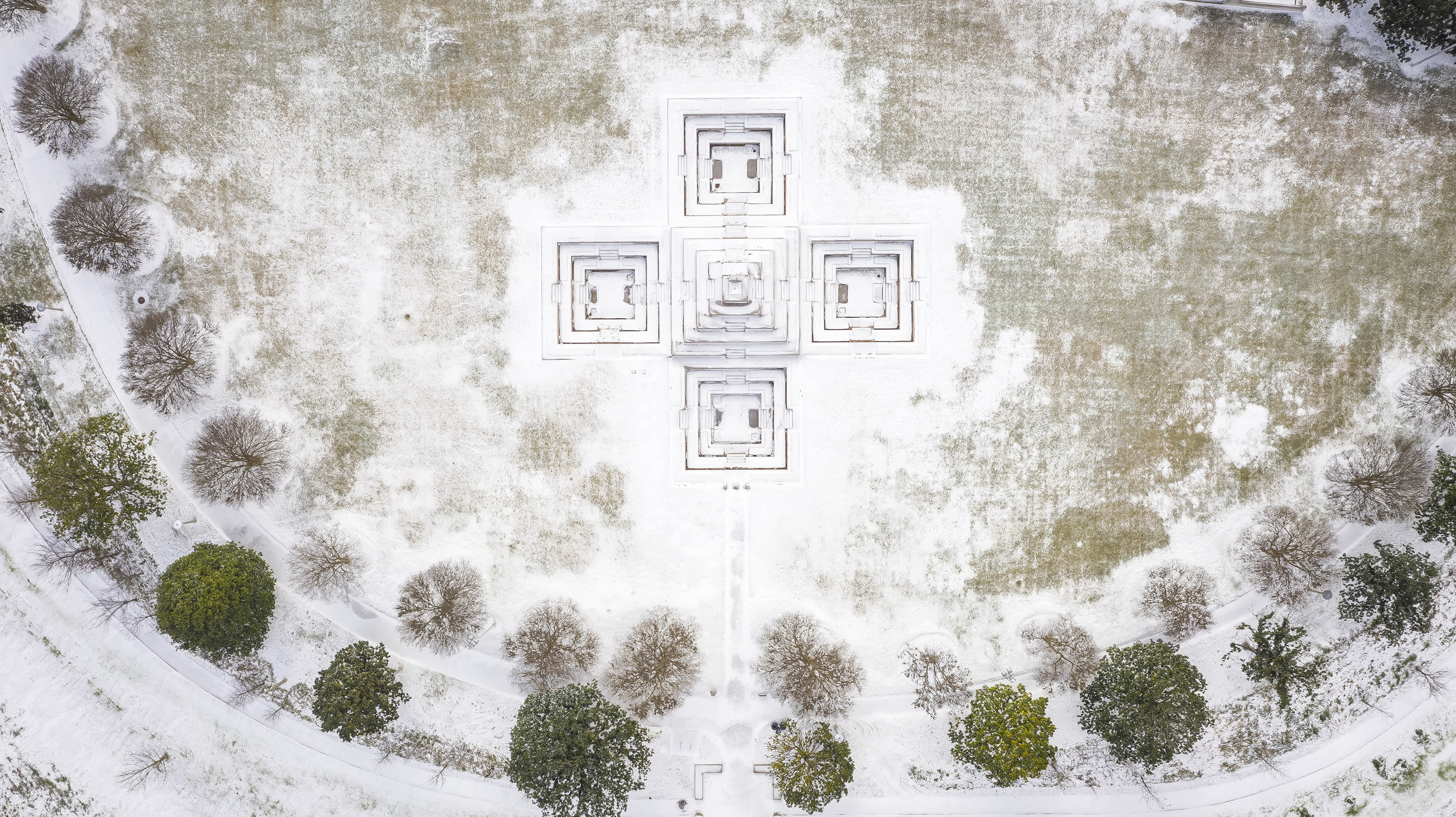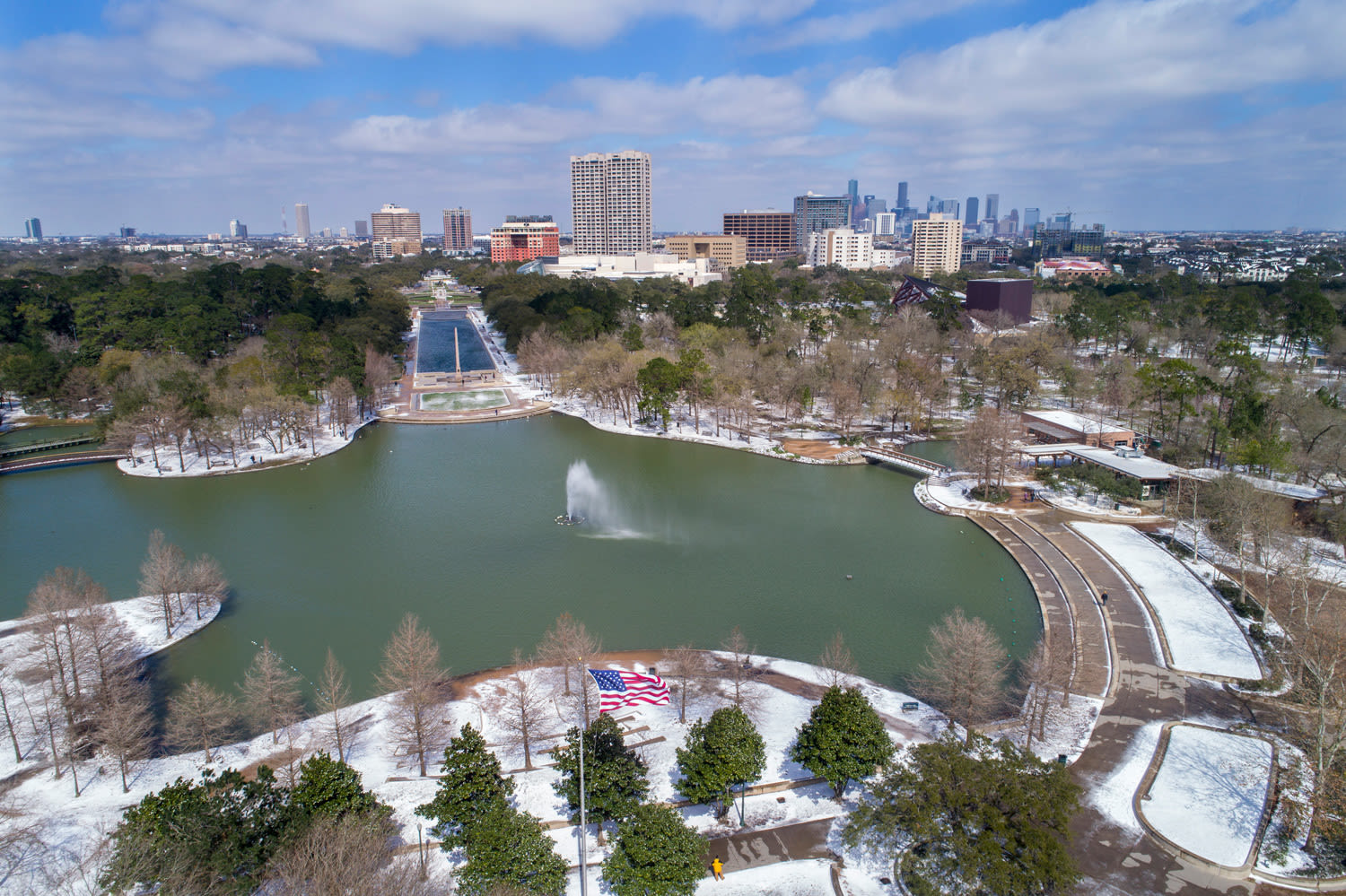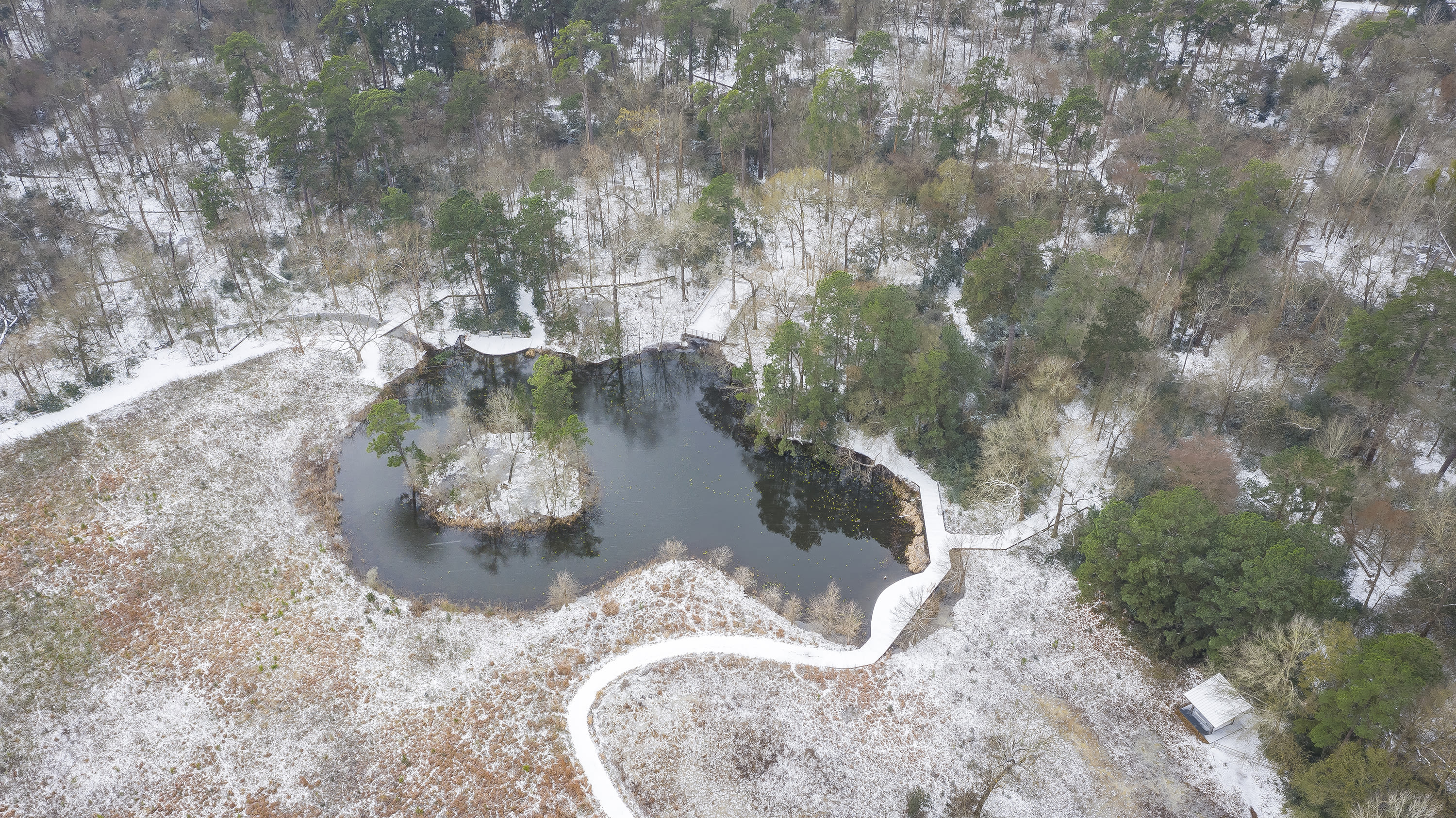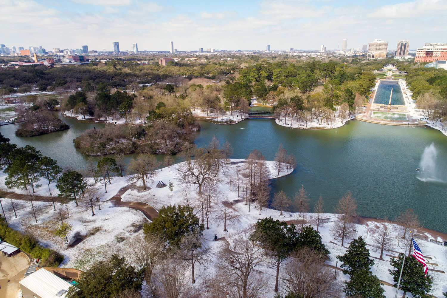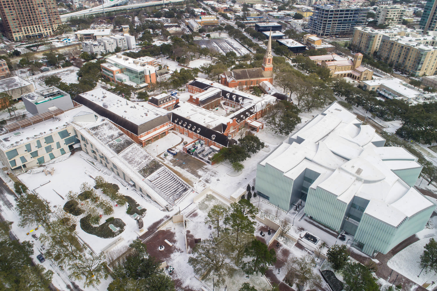 A Drone's-eye View of a Snowbound Houston