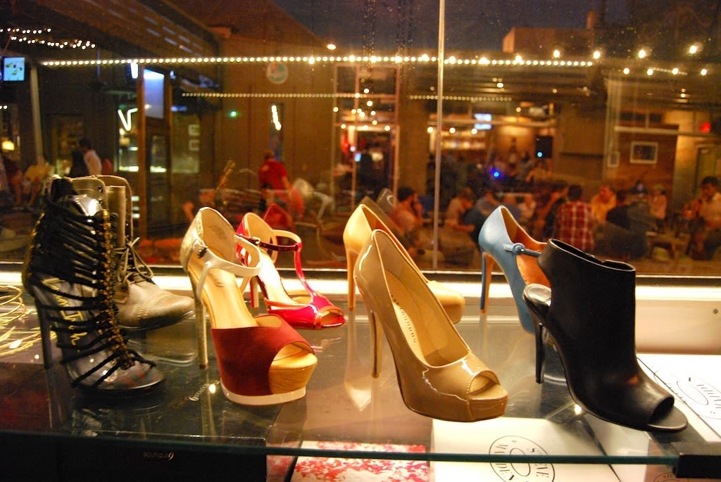 After buying a pair of heels, shoppers headed to Liberty Station (background) for a drink.