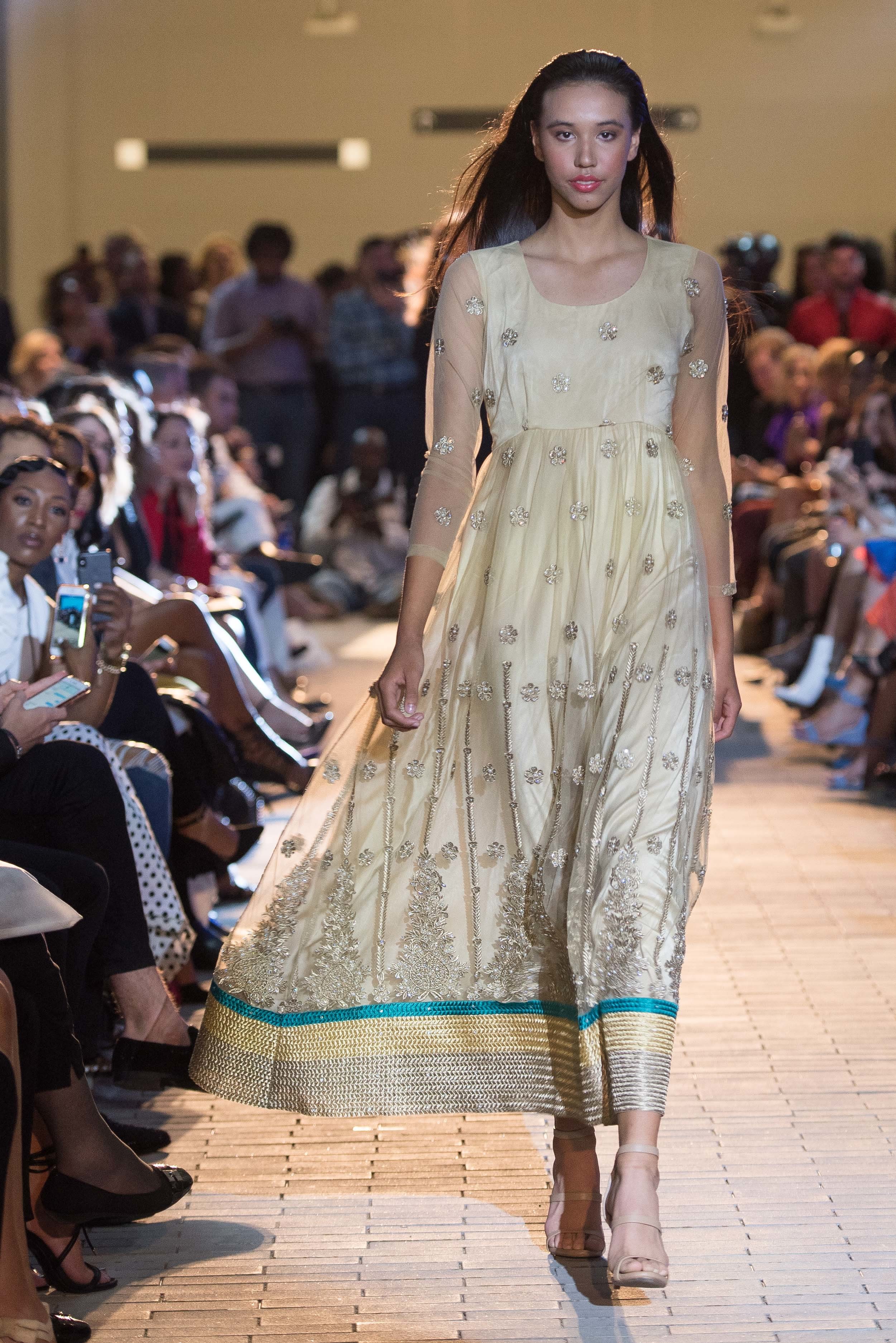 Another local designer, Shehla Rana, debuted her Cape Collection and Lace Collection at the show. For the former, Rana was inspired by the abaya, a robe-like dress worn in Middle Eastern cultures. She showed a range of blouses, palazzo pants, and dresses on Thursday's runway.