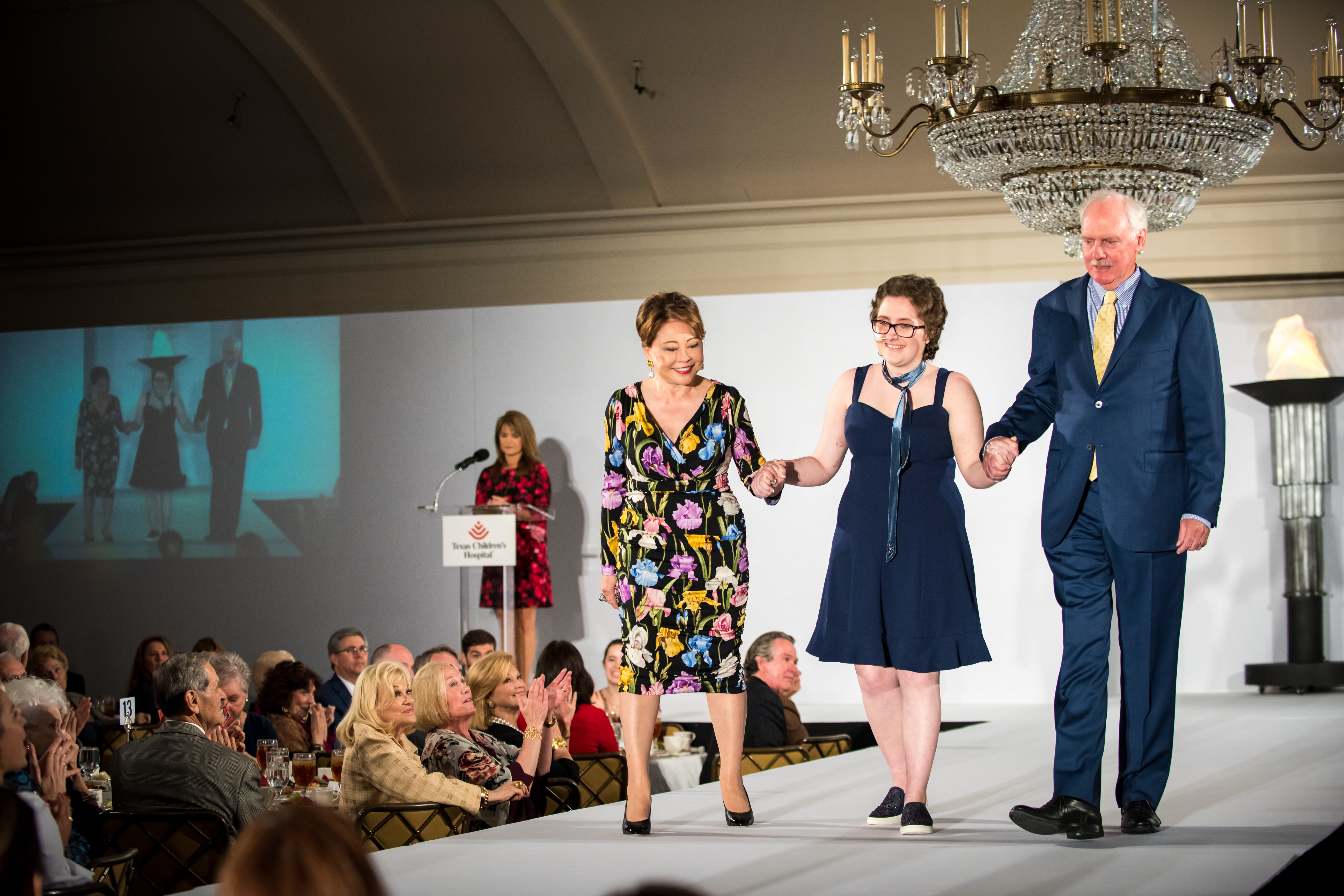 In true model form, children had their hair and makeup done before the show, and their pride was on full display as they strutted down the catwalk, some striking a pose or—in one case—busting a move (specifically, the so-called Backpack Kid's signature dance, The Floss) to a raucous reaction. One patient-turned-model, Rylie York, now a freshman studying journalism at Baylor, also gave the invocation.
